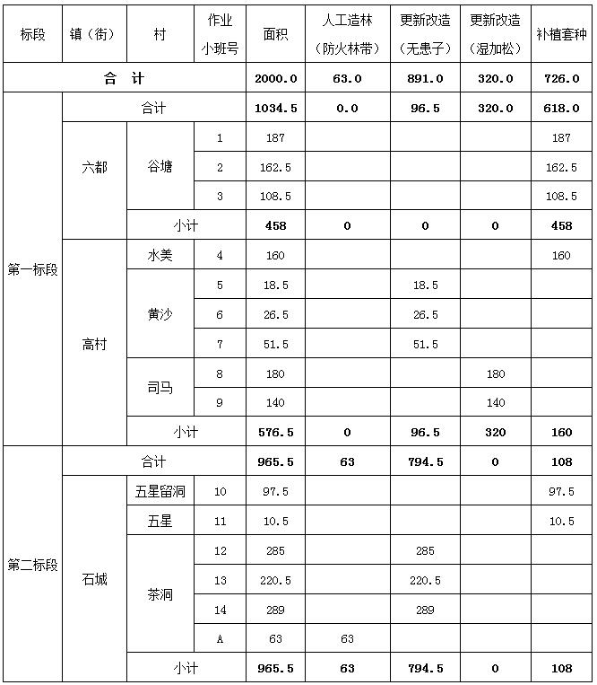 (二)、采購(gòu)文件第二章 用戶需求書P7中“四、云安區(qū)2020年森林碳匯重點(diǎn)生態(tài)工程項(xiàng)目要求--(四)建設(shè)工程量”